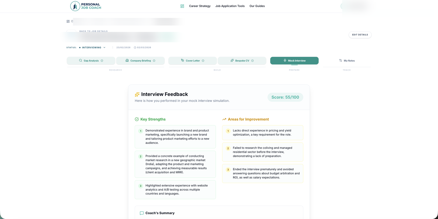 Practise the exact questions you are likely to face. Get structured feedback and walk in confident.